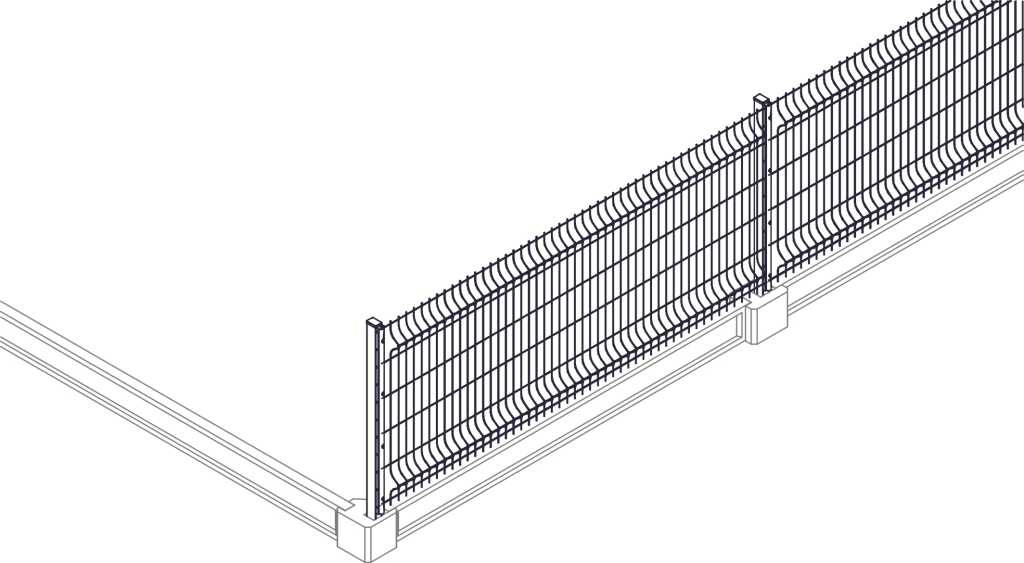 The bottom barrier (or concrete panel) is very easy to install together with the posts of the fence panel system using connecting parts, making it fully adaptable to any natural conditions (curvature, corners, height differences, angles).